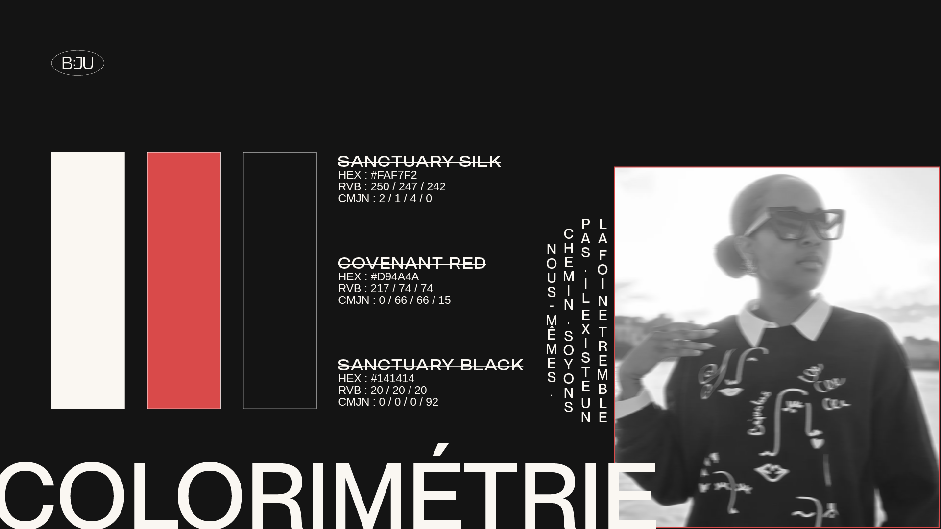 L’univers BJU repose sur une grammaire graphique volontairement sobre. Typographies fortes.